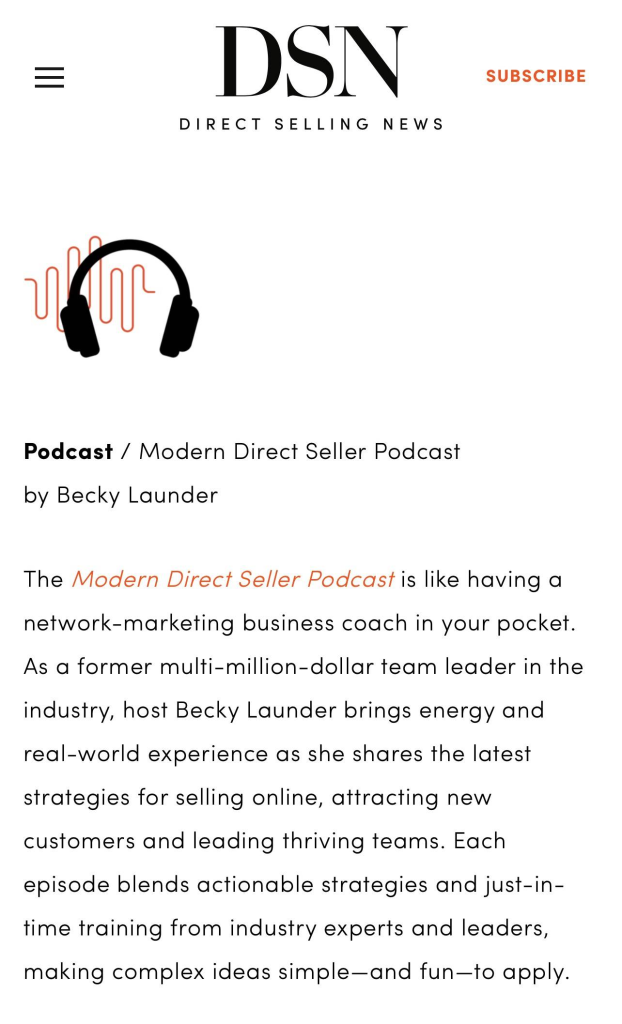 When the Modern Direct Seller Podcast was featured by Direct Selling News as a top podcast for the field, it hit differently than I expected.